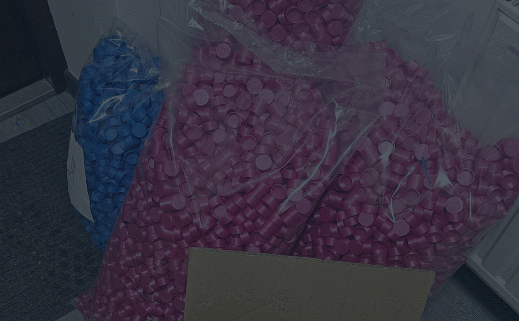 Sklep dla rozlewni CO₂ — różowe i niebieskie korki oraz plomby do butli gazowych.